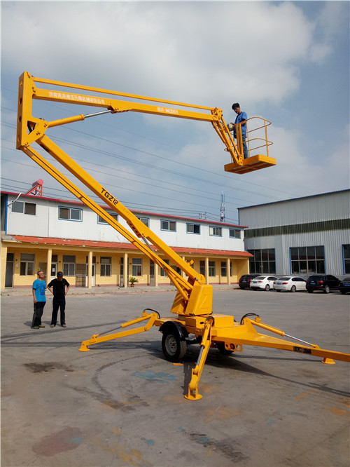 四川客戶來驗(yàn)收的這臺拖車折臂式液壓升降平臺,升高14米,載重260公斤,最大延伸工作距離2-8米,它的動(dòng)力電源可采用柴油機(jī),電瓶,及汽油機(jī).