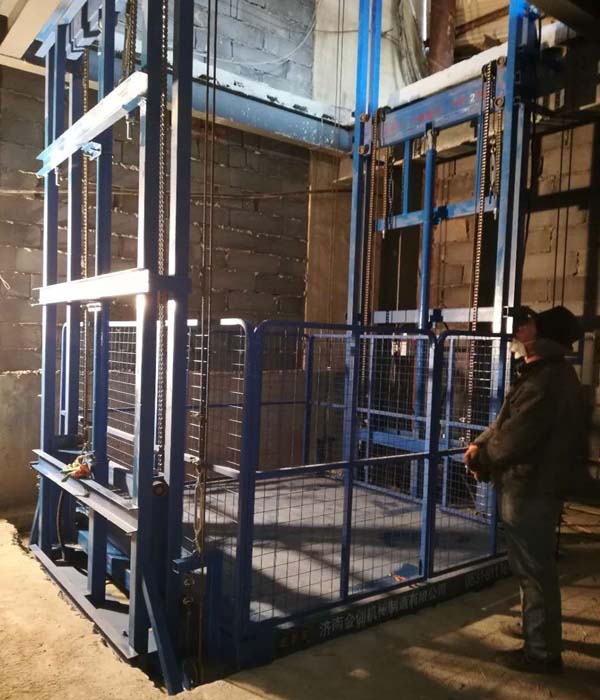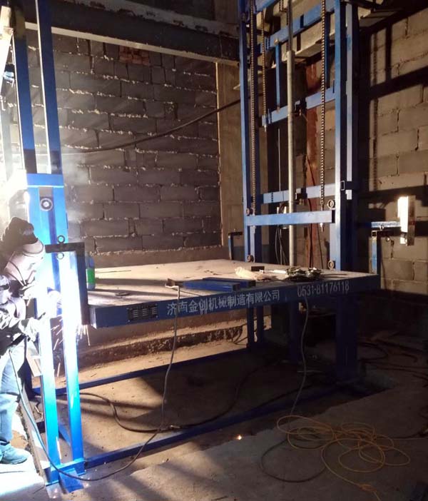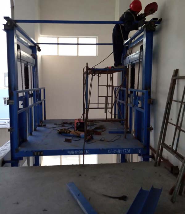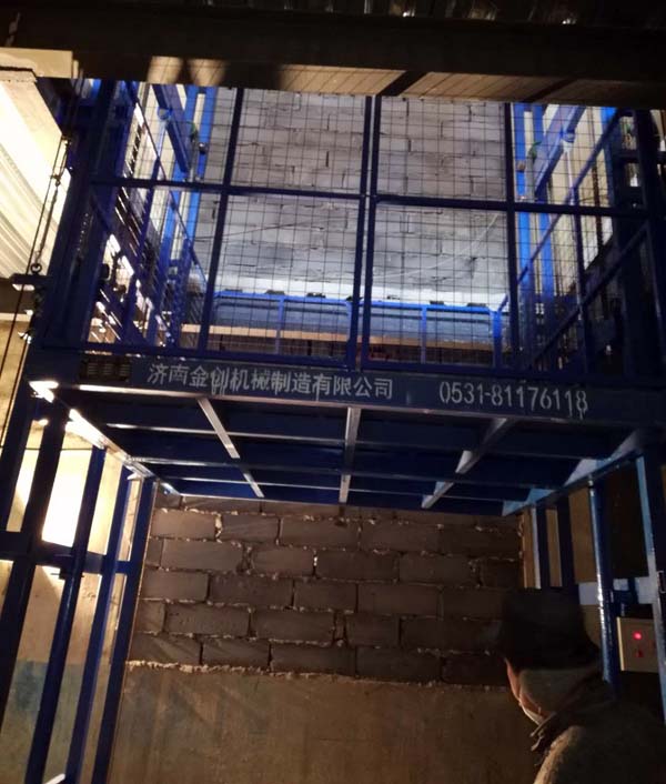 液壓升降貨梯生產制造廠家-濟南金創(chuàng)機械制造有限公司,為威?蛻舳ㄗ龅纳13米,載重5噸的導軌鏈條式液壓升降貨梯,嚴寒天氣下,經(jīng)過安裝師傅加班加點的努力,昨天下午通過了客戶方的驗收工作。
