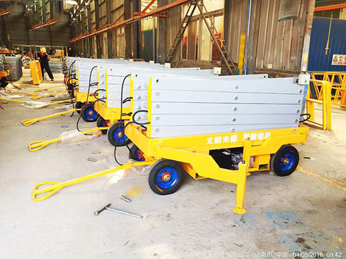 人力牽引移動式液壓升降機(jī),移動靈活輕便,升高4-22米,載重200-3000kg,升降動力可采用380v、或220v外接電源。臺面和底下雙重控制升降系統(tǒng)
